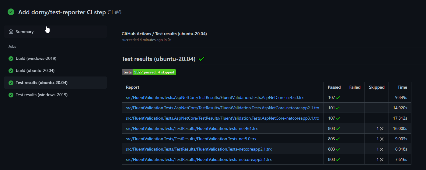 This [Github Action](https://github.com/features/actions) displays test results from popular testing frameworks directly in GitHub.